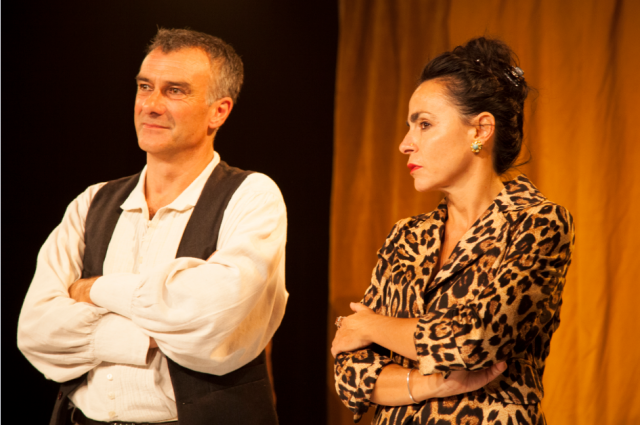 Son duo avec son acolyte venant du public pour incarner les personnages féminins est drôlissime et pertinent, jouant sur l’interactivité coextensive à la commedia. Cette dernière s’adresse directement au public, le 4ème mur n’existe pas.